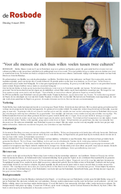 Interview in local news paper De Rosbode, March 8, 2016.